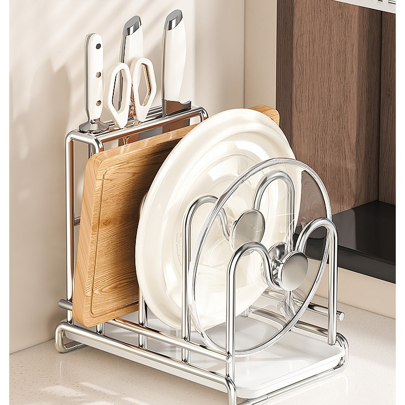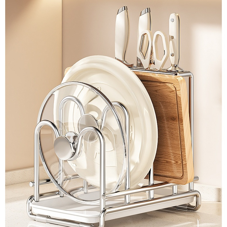Stainless Steel Pot Lid and Knife Organizer Rack